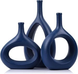 Goodsright Decor Navy Blue Vase Set of 3,Unique Hollow Blue Vase,Blue Pampas Grass Vase Ceramics Living Room Decorations,Red Home Decor Small Vases for Living Room,Bedroom,Coffee Table,Fireplace,Bookshelf,Dining Table