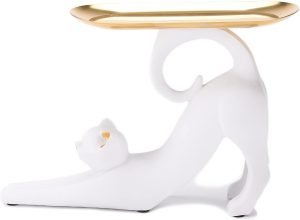 Goodsright Decor Resin Cat Stretching Tray Statue Tray for Keys Candy Jewelry Ring Fruit, Modern White Living Room Bedroom Decoration TQGJPT505