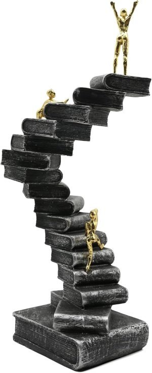 Goodsright Decor Climbing Books Ladder Statue Art Decor, Funny Book Stairs Sculpture, Climbing Mountain of Knowledge Figurines, Creative Decoration for Bedroom Living Room Office, Resin 12”