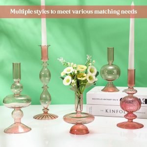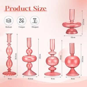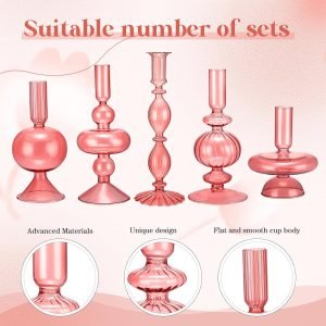 Our set offers five glass candlesticks in various shapes, making these pieces the ultimate candles holders for any occasion. This versatility allows these glass candlesticks holders to perfectly decorate holiday accents, lighting fixtures, showrooms, weddings, banquets, stage props, and even a DIY craft project.
