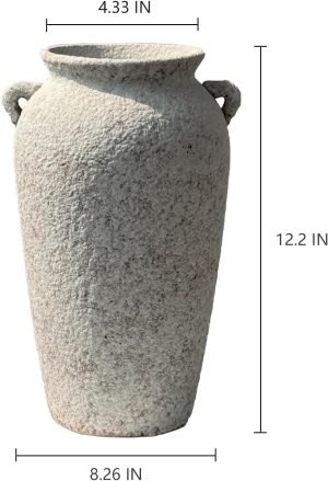 Goodsright Decor Ceramic Rustic Farmhouse Vase with Ears Large Vintage Decorative Flower Vase for Home Decor 12.2 Inch Tall Handmade Terracotta Vase for Living Room Decor Table Entryway Farmhouse Grey-White