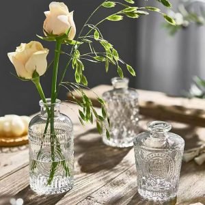 Goodsright Decor Glass Bud Vases Set of 32,Small Flower Vases for Wedding Centerpiece Table Decorations,Clear Vintage Embossed Mini Vases,Flower Arrangements in Vases for Party or Home Decor