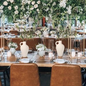 – The juxtaposition of the crisp white vases against the verdant olive branches creates a striking visual contrast that captivates the eye. This harmonious combination adds depth and dimension to your decor, creating a welcoming atmosphere.